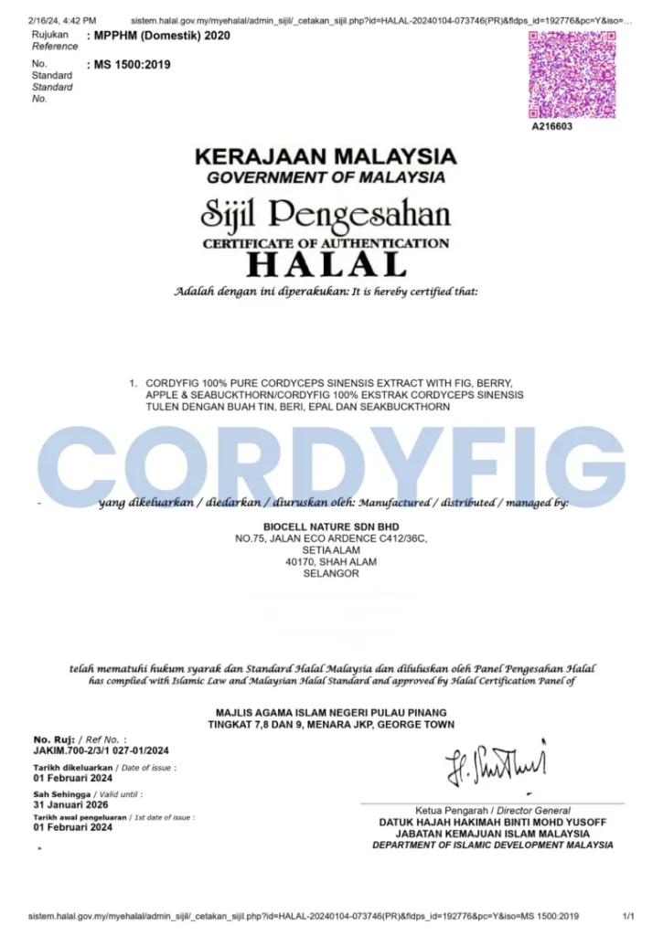 Jangan Risau ! Cordyfig Ada Kelulusan & Sijil Sah