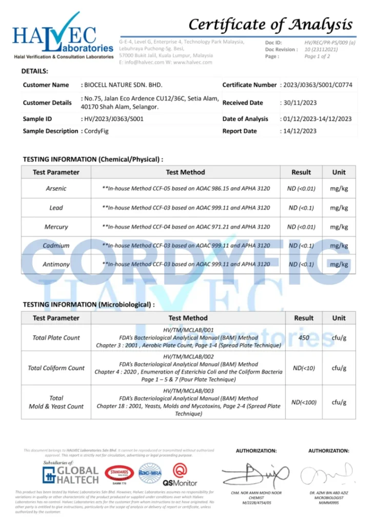 Cordyfig Diperakui Oleh Pakar Dan Juga Terbukti Dengan Sijil Lulus Ujian Makmal Dan Pengesahan Halal JAKIM.