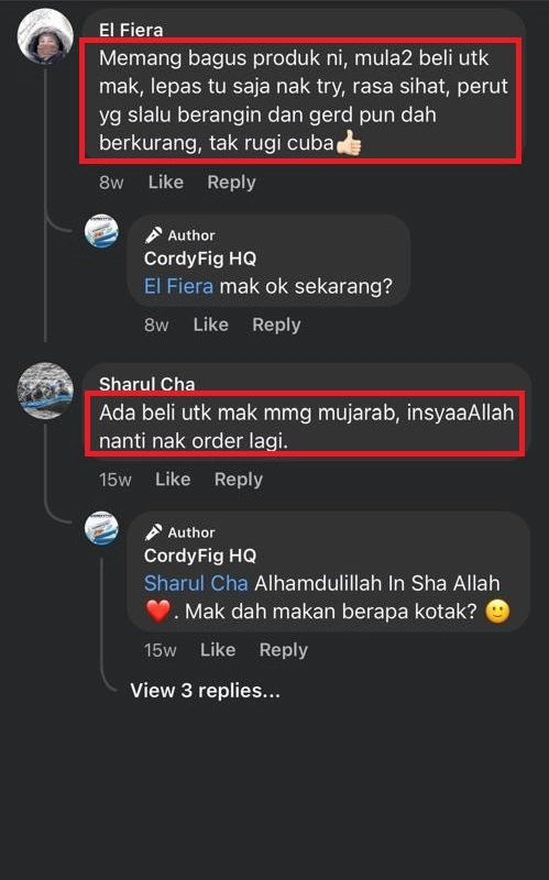 “Hasil Kajian Selama 45 Tahun, akhirnya Cordyfig berjaya dihasilkan, satu satunya produk pertama di Malaysia yg terbukti dapat merawat pelbagai masalah penyakit dan mengembalikan kesihatan.”